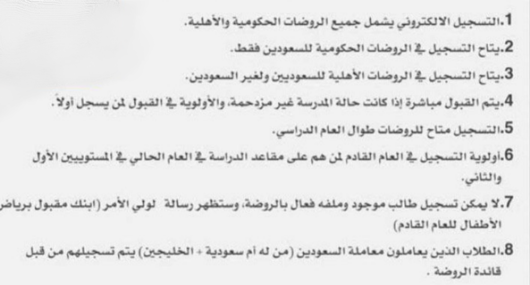 هذا وقد بدأ تسجيل الروضة رياض الأطفال صباح اليوم الأحد الموافق 15 شعبان 1440 والموافقة 21 إبريل 2019 لمرحلة رياض الأطفال من أسرة سعودية أو من أم سعودية فقط عن طريق الدخول والتسجيل