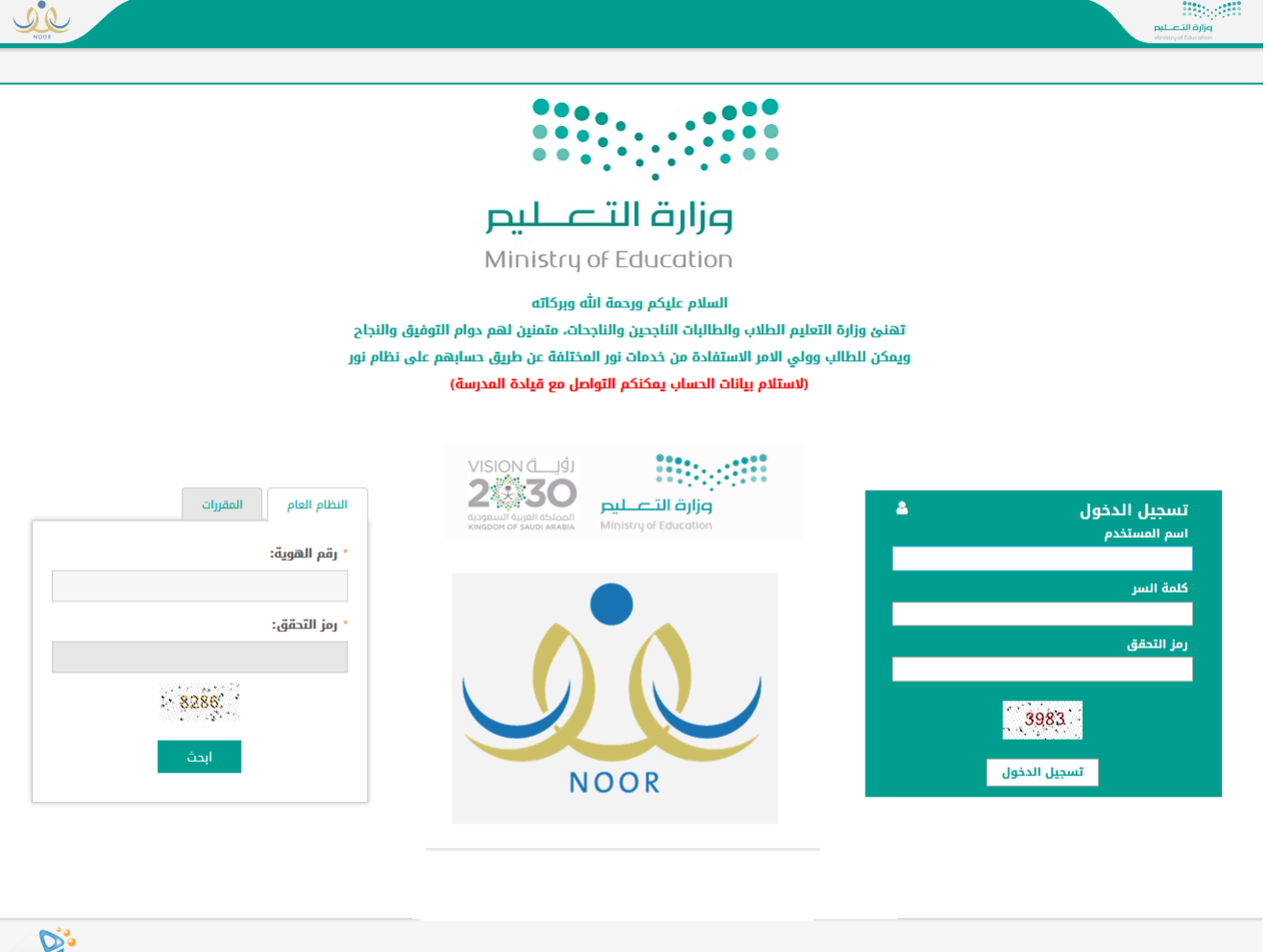 وهذا وكان قد تم إيقاف نظام نور من قبل الوزارة ثم تم فتحه فقط باسم المستخدم وكلمة المرور لولي الأمر كما في حالة طلاب الروضة أو للطالب نفسه في المرحلة المتوسطة والثانوية ، كذلك يتيح نظام نور معرفة نتائج للنقل الداخلي للمعلمين عن طريق التسجيل على رابط نظام نور.